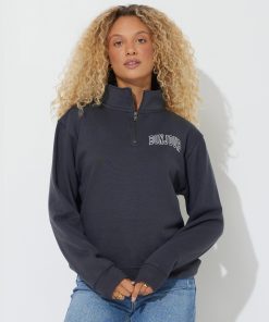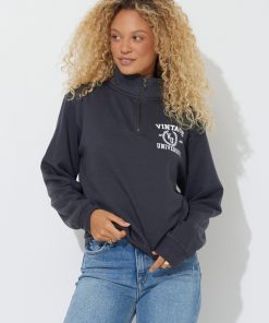 VintageHavana Women’s Black "vintage University" Quarter Pigment Dyed Zip Sweatshirt | Black