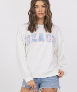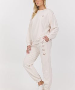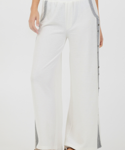 VintageHavana Women’s Cream Heather Grey Texture Knit Pant W Contrast Rib | Cream Heather Grey