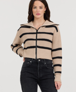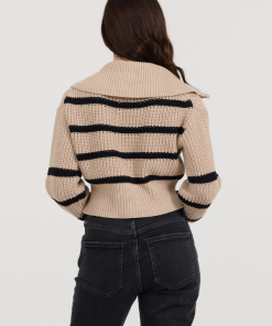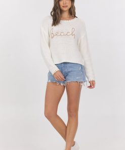 VintageHavana Women’s Summer Sand White Short Sleeve Sweater W/ Whipstitch | Summer Sand With White