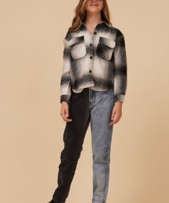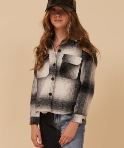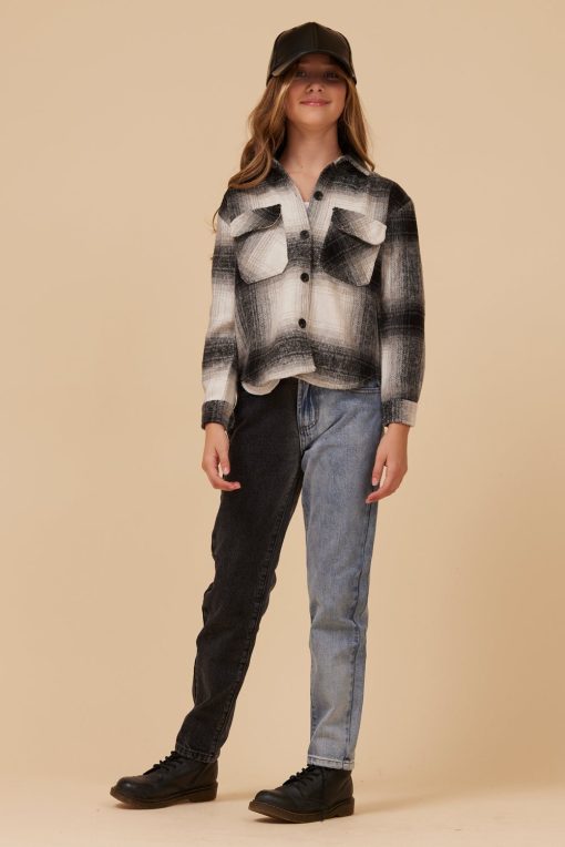 VintageHavana Kid’s Tops Flannel Shacket- Black | Grey