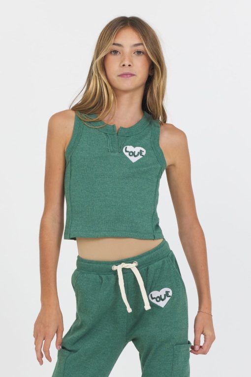 The Hunter Green ‘Love’ Notch Rib Tank features: