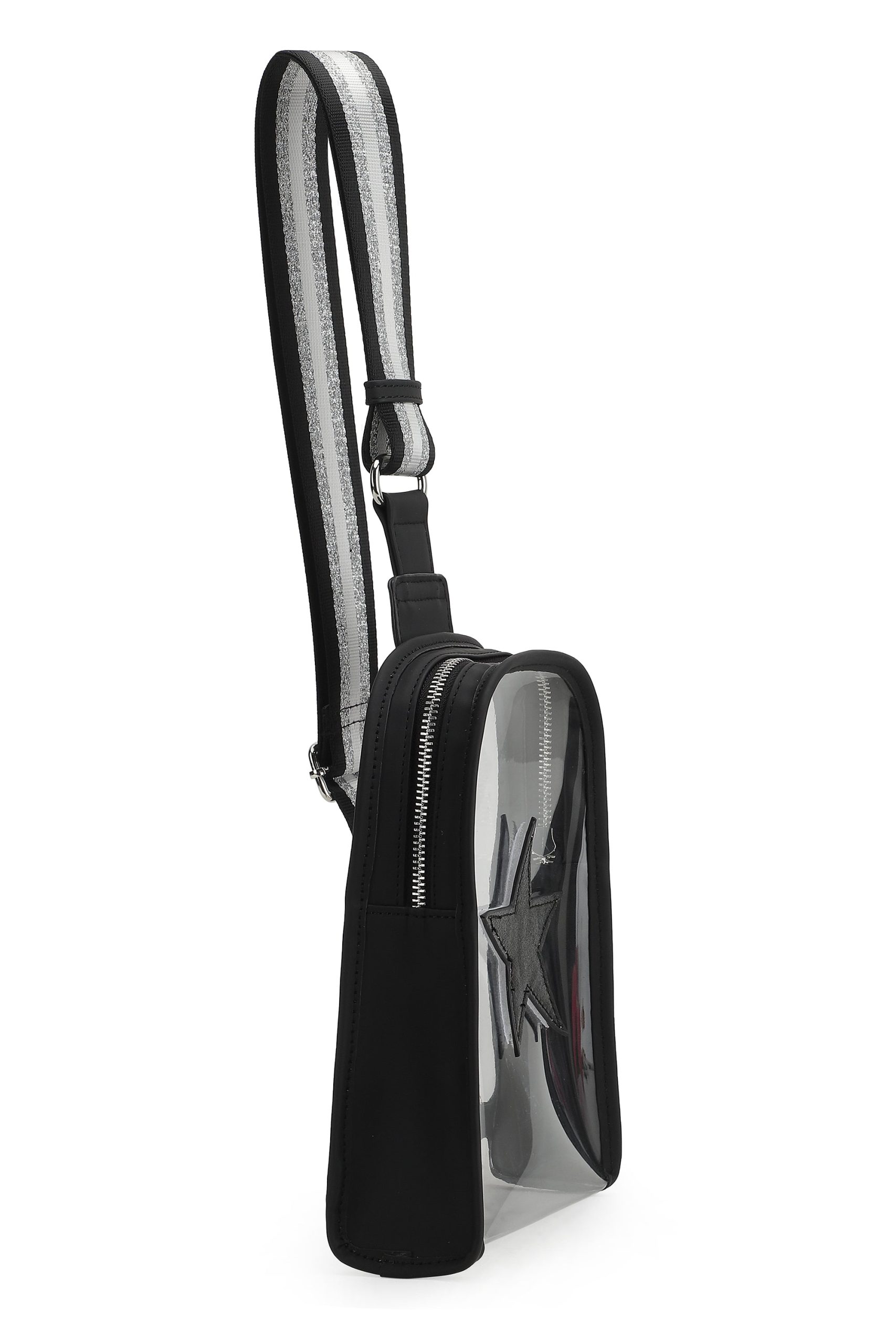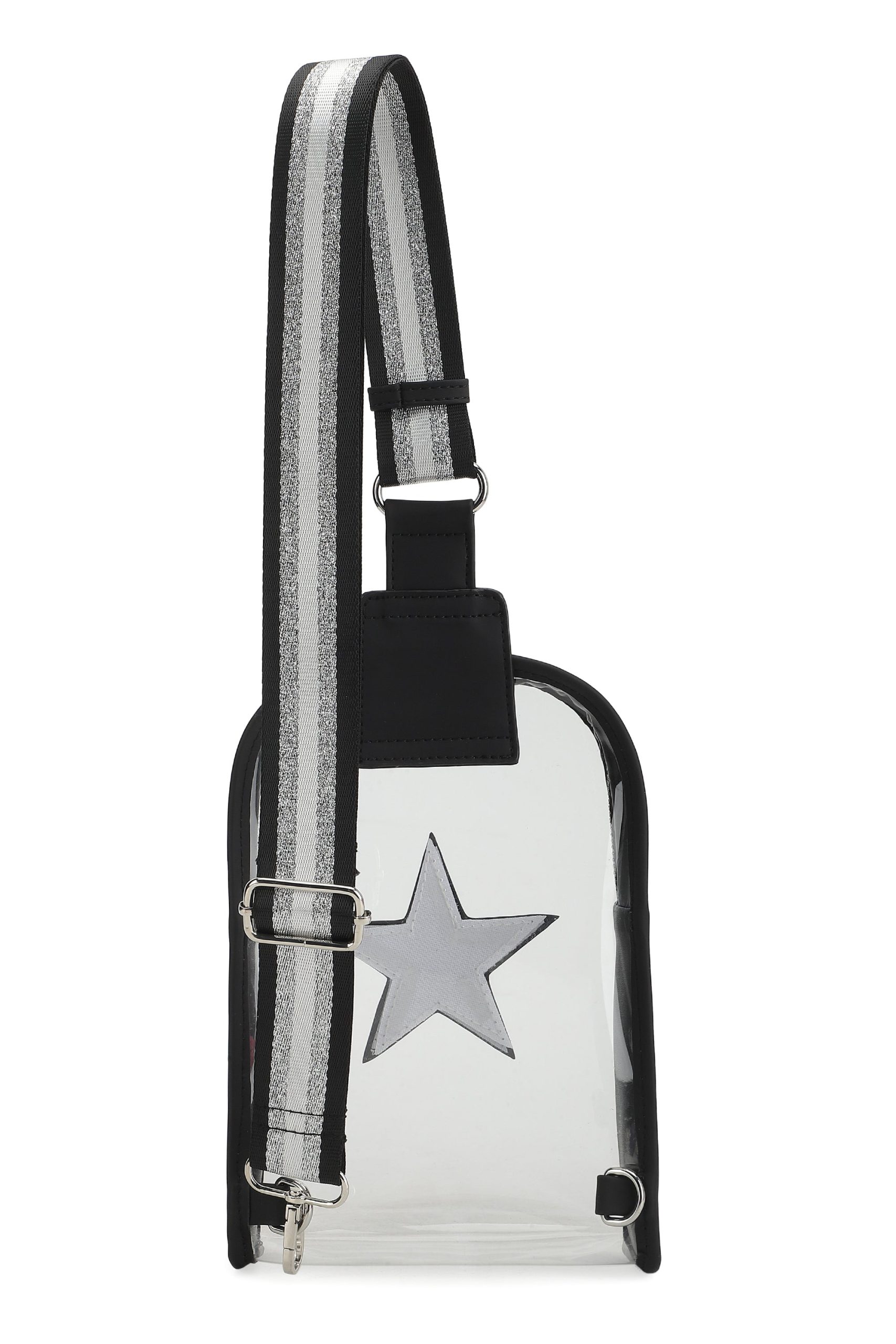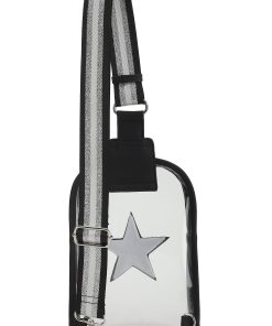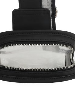 The Alexa Bag in Clear Black offers a sleek crossbody design with an adjustable strap for personalized comfort. Its transparent style combines practicality with modern flair, making it easy to find your essentials while keeping your look effortlessly chic. Perfect for everyday use or special events where convenience meets style.