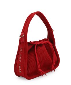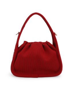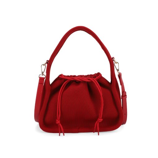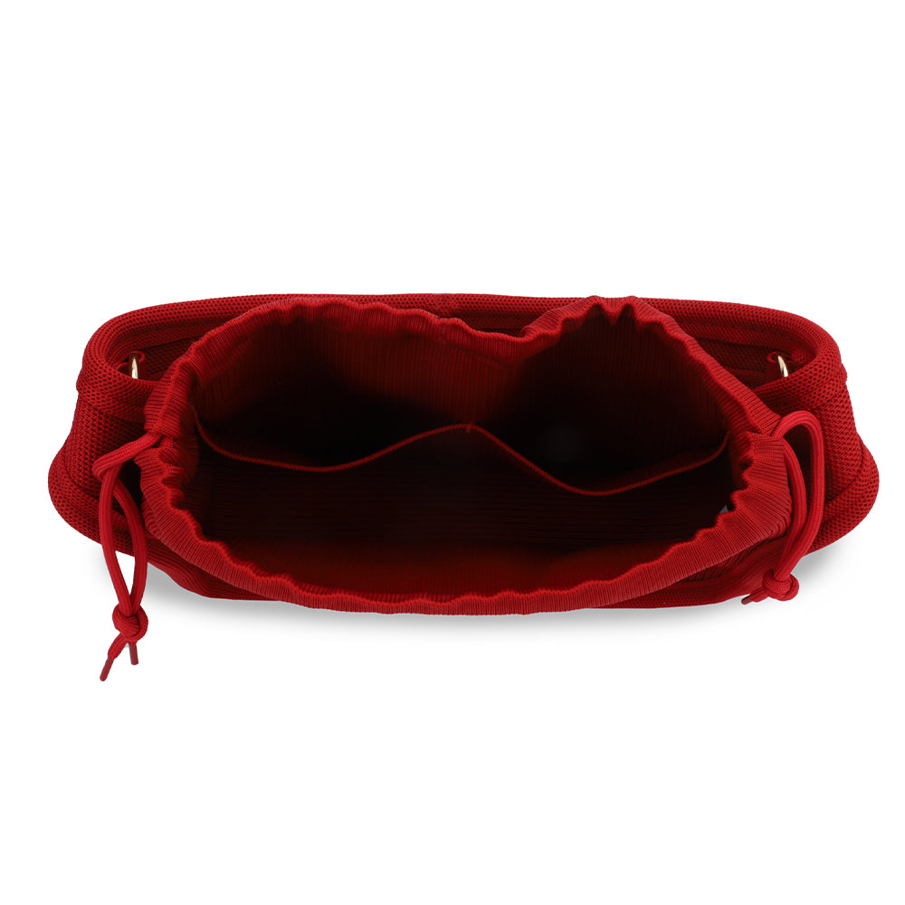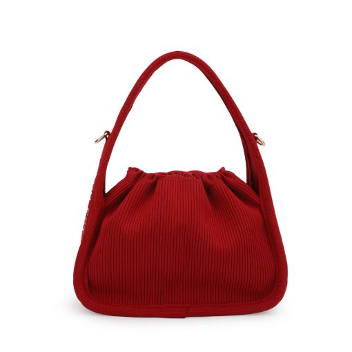 The Aurora Bag in red combines a stylish ribbed texture with a practical drawstring closure, offering both visual appeal and secure storage. Its design ensures easy access while keeping your essentials safe, making it a versatile accessory for everyday use.