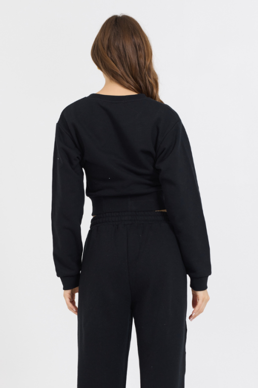 The Black Brushed Fleece Corset Crew features: