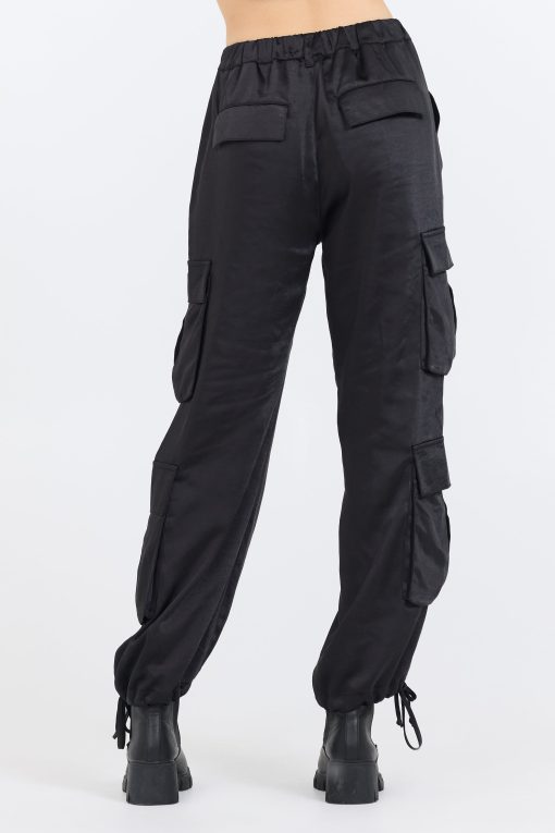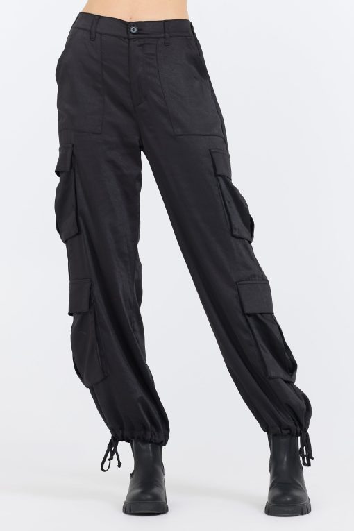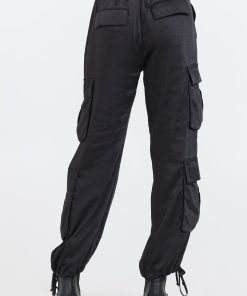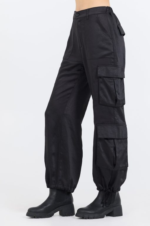 VintageHavana Women’s Black Heavy Satin Cargo Pants | Black