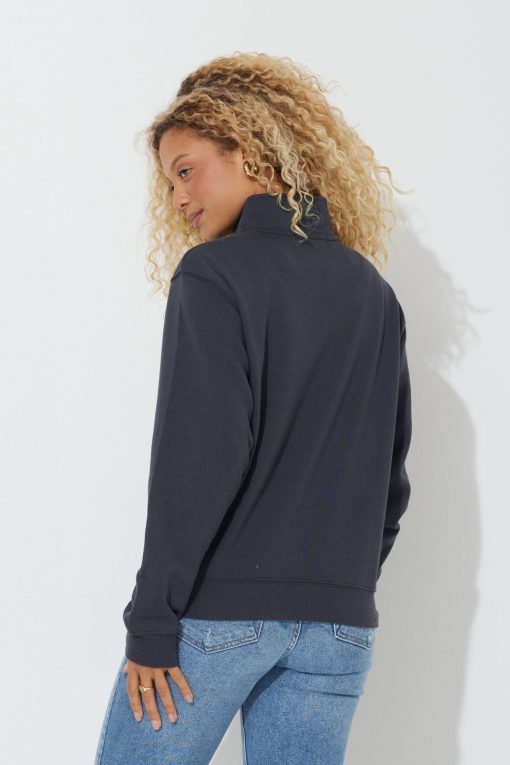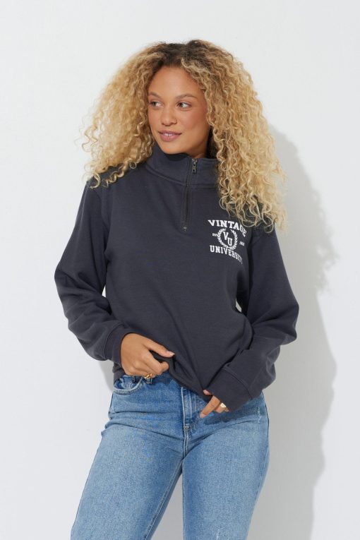 The Black “Vintage University” Quarter Pigment Dyed Zip Sweatshirt features: