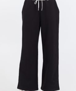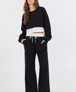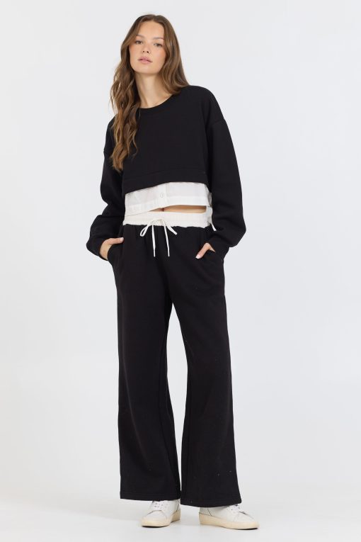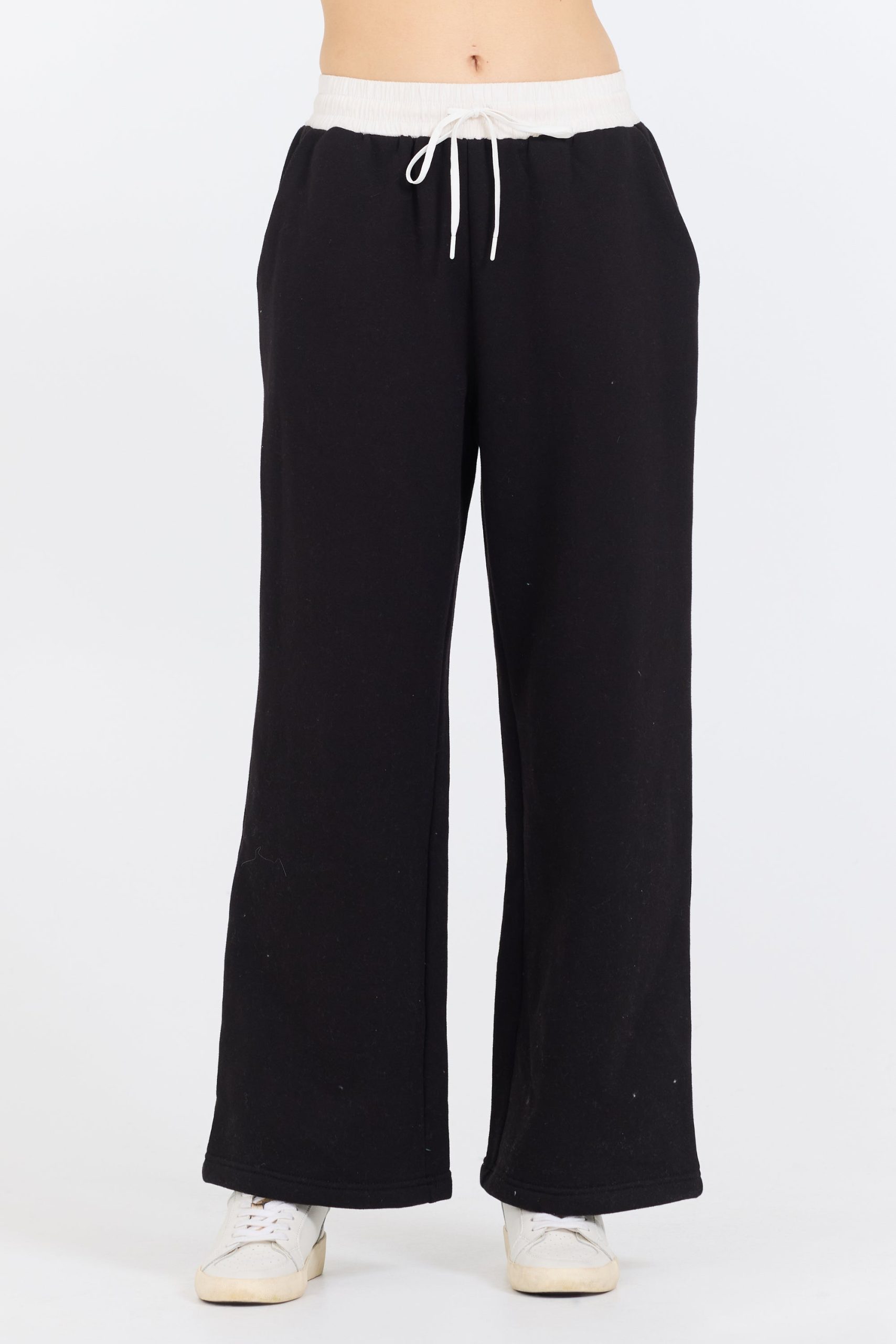 The Black/ White Essential Fleece Pant W/ Poplin Waist features: