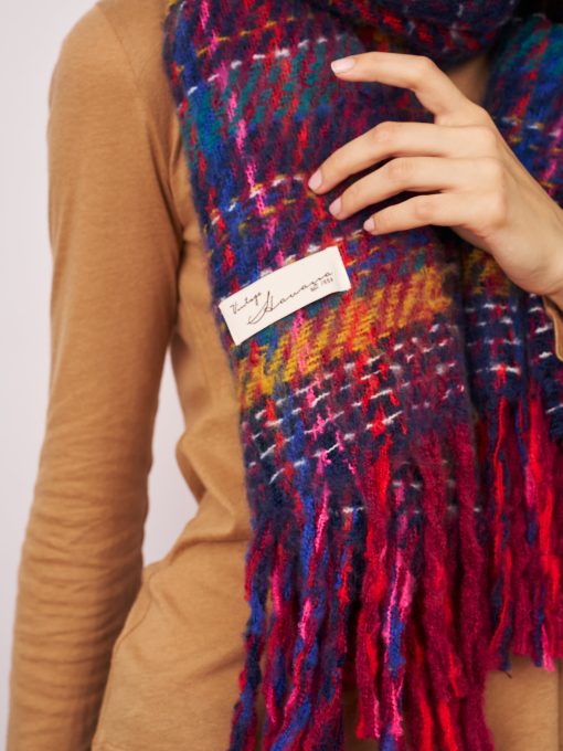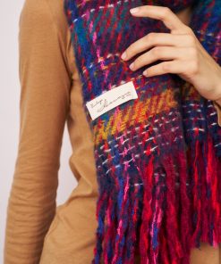 This pink multi-colored brushed fringe scarf combines softness and vibrant hues to elevate any outfit. Its brushed texture offers cozy warmth and a gentle feel against the skin, while the fringe detailing adds a stylish, dynamic touch. Perfect for layering, this scarf brings both comfort and a pop of color to your wardrobe with effortless sophistication.