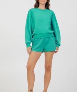 VintageHavana Women’s Caribbean Turquoise Shorts + Crew 2-piece Set