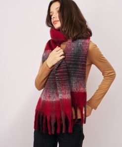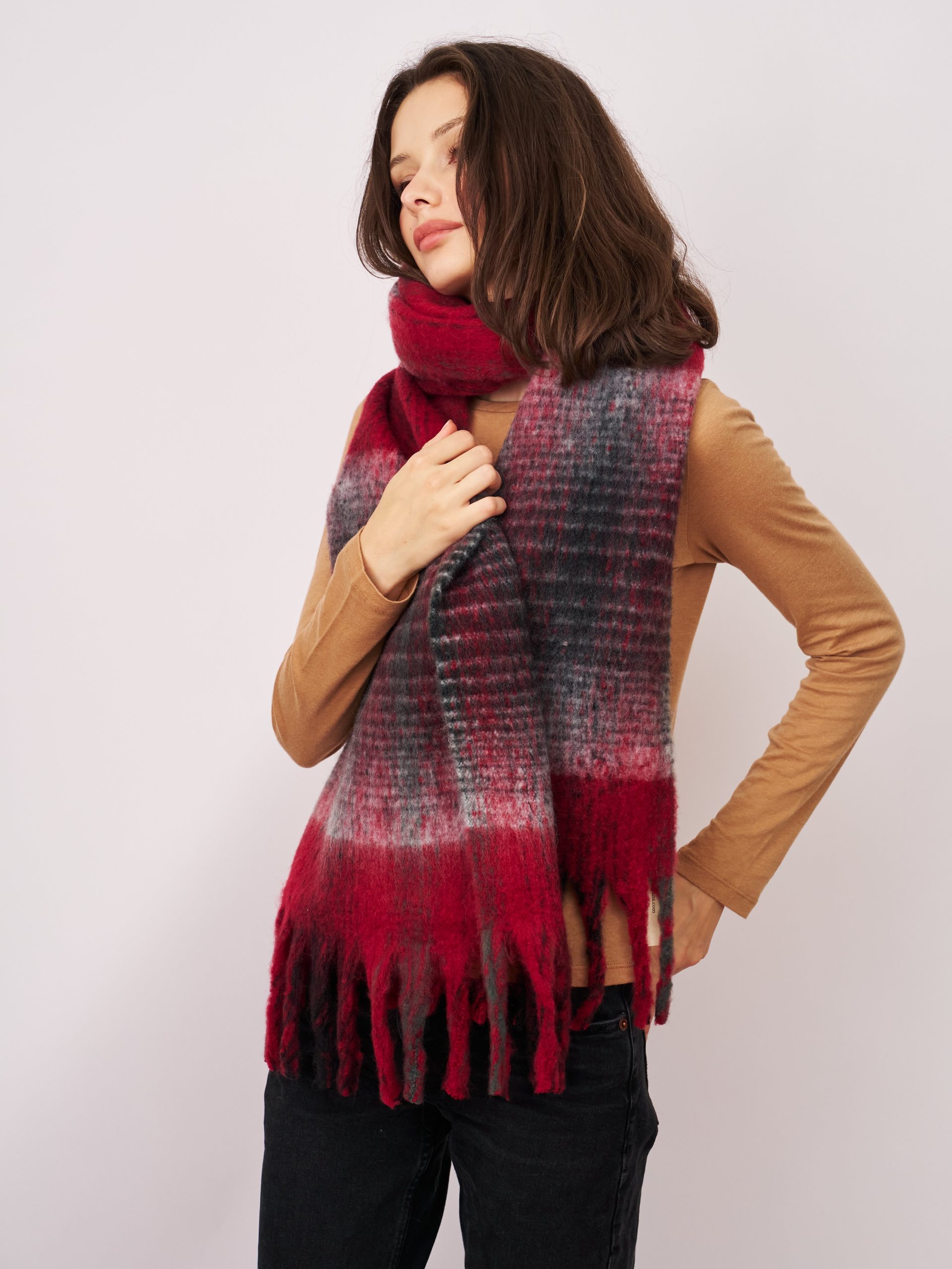 Stay cozy and stylish with this red check chunky tassel scarf. Made from 100% polyester, its brushed texture offers warmth and softness, while the bold check pattern and fringe details add a classic yet contemporary touch to any outfit. Perfect for layering during cooler days, this scarf combines comfort with timeless design.