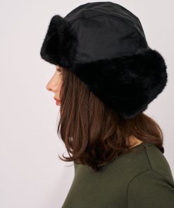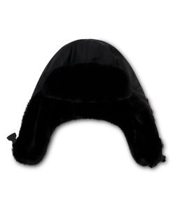 This black fur trapper hat combines style and warmth with a durable 100% PU shell and a soft 100% polyester lining. Designed to protect you from cold weather, its fur trim adds extra insulation and a classic look, making it a practical and fashionable choice for chilly days.