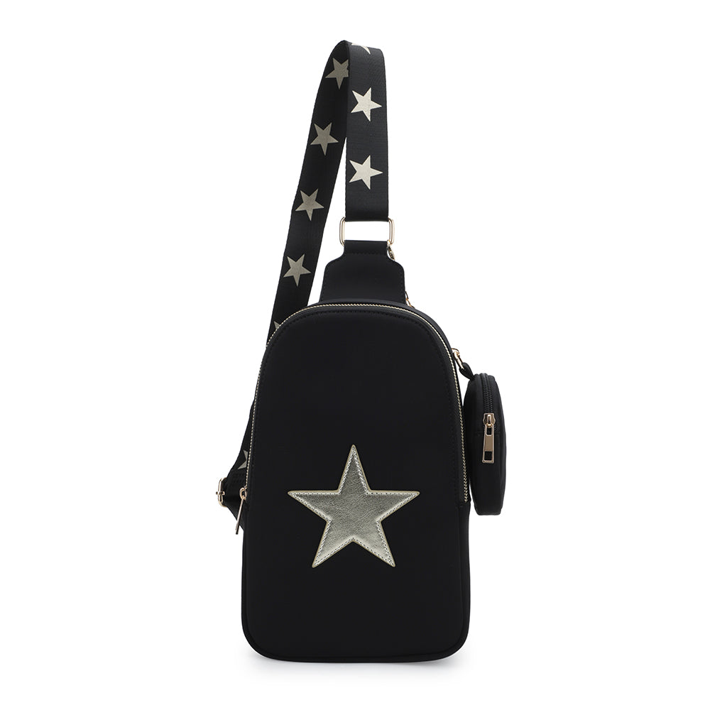 The Kety Bag in Black and Gold combines sleek design with practical features. Its secure zipper closure keeps your belongings safe, while the subtle star detail adds a touch of unique style. Perfect for everyday use, this bag offers both functionality and a refined look.
