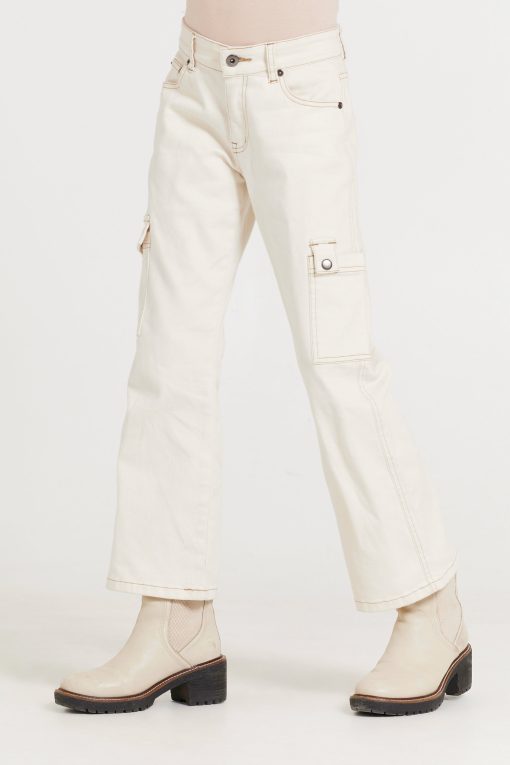 The Kids Cream Cargo Jean offers a comfortable and practical design with classic cargo pockets for easy storage. Crafted for durability and everyday wear, these jeans combine functionality with a clean, neutral cream color that pairs well with any outfit. Ideal for active kids, they provide both style and convenience in one versatile piece.
