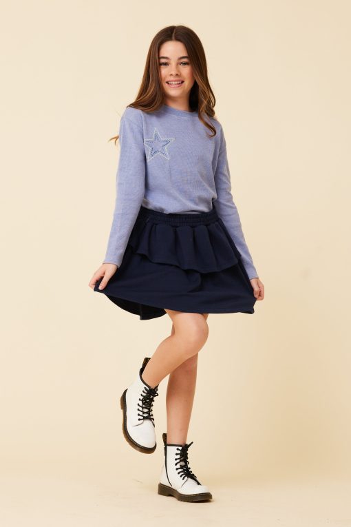 The Layered Skirt in navy offers a sophisticated yet relaxed look with its tiered layers that add depth and movement. Perfect for both casual outings and more polished occasions, this skirt combines style and comfort effortlessly.