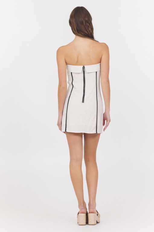 This Linen Blend Mini Dress with Piping combines breathable linen fabric with subtle piping details for a polished yet relaxed look. Its lightweight material ensures comfort throughout the day, while the tailored piping adds a refined touch, making it perfect for both casual outings and more dressed-up occasions.