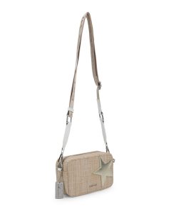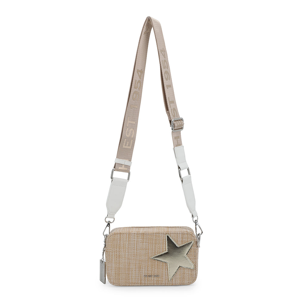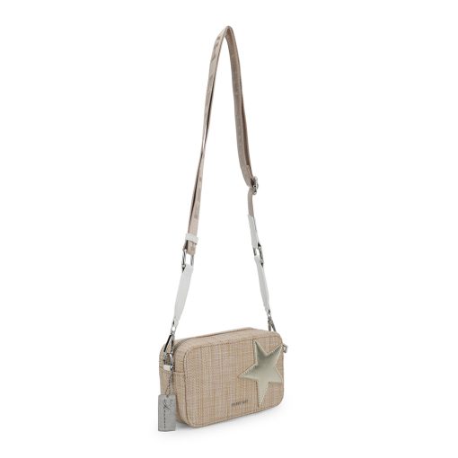 The Mini Meme in Champagne offers a sleek, compact design perfect for everyday essentials. Featuring an adjustable crossbody strap, it provides customizable comfort and hands-free convenience. The subtle star detail adds a touch of unique style, making it a versatile accessory for both casual and polished looks.
