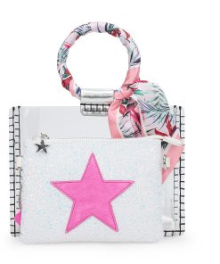 The Mini Molly in Scarf Pink Mix combines style and practicality with a top strap and a convenient crossbody strap for versatile carrying options. Its pull-to-close design ensures secure storage, while the star detail inside the zipper pouch adds a subtle touch of charm. Finished with a coordinating scarf, this bag offers a polished yet casual look perfect for everyday use.