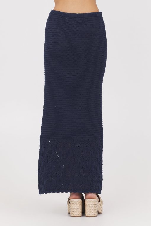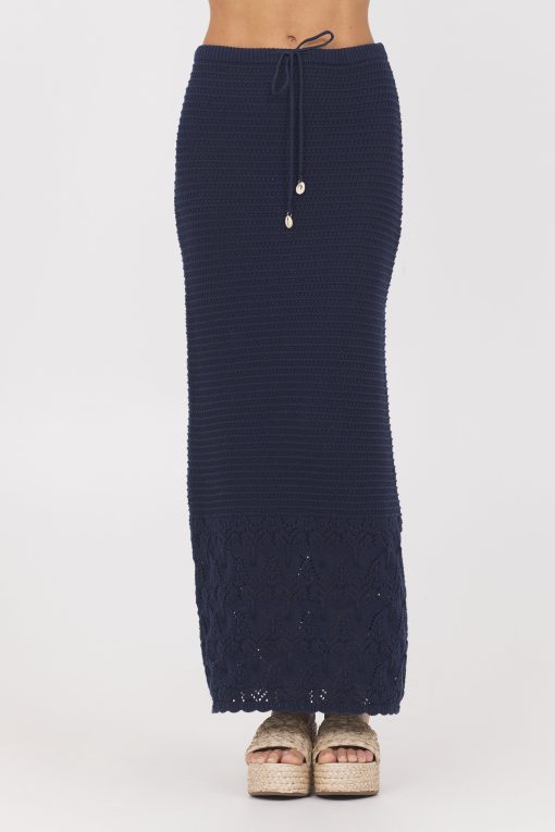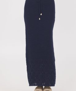 The Navy Crochet Maxi Skirt combines comfort and style with its elastic waistband and adjustable tie detail, ensuring a perfect fit. Crafted from delicate crochet fabric, this skirt offers a lightweight, breathable feel ideal for warm weather or layering. Its elegant design makes it a versatile addition to your wardrobe, suitable for both casual outings and more polished looks.