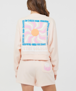 VintageHavana Women’s Peach Parfait W/ Multi Puff Print Surf Wash Crewneck | Peach Parfait