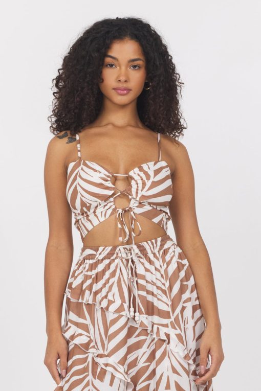 The Printed Rayon Cut Out Tank features:
