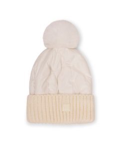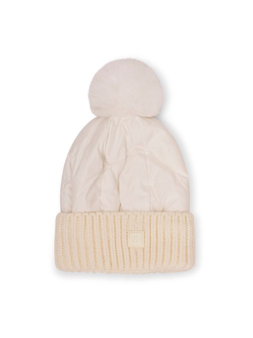 This white puffer pompom hat combines warmth and style with its quilted nylon shell and soft polyester lining. The ribbed cuff, made from a comfortable blend of acrylic, polyester, and elastane, ensures a snug fit. Finished with a playful polyester pompom, this hat is perfect for keeping cozy during chilly days while adding a casual, expert touch to your winter wardrobe.