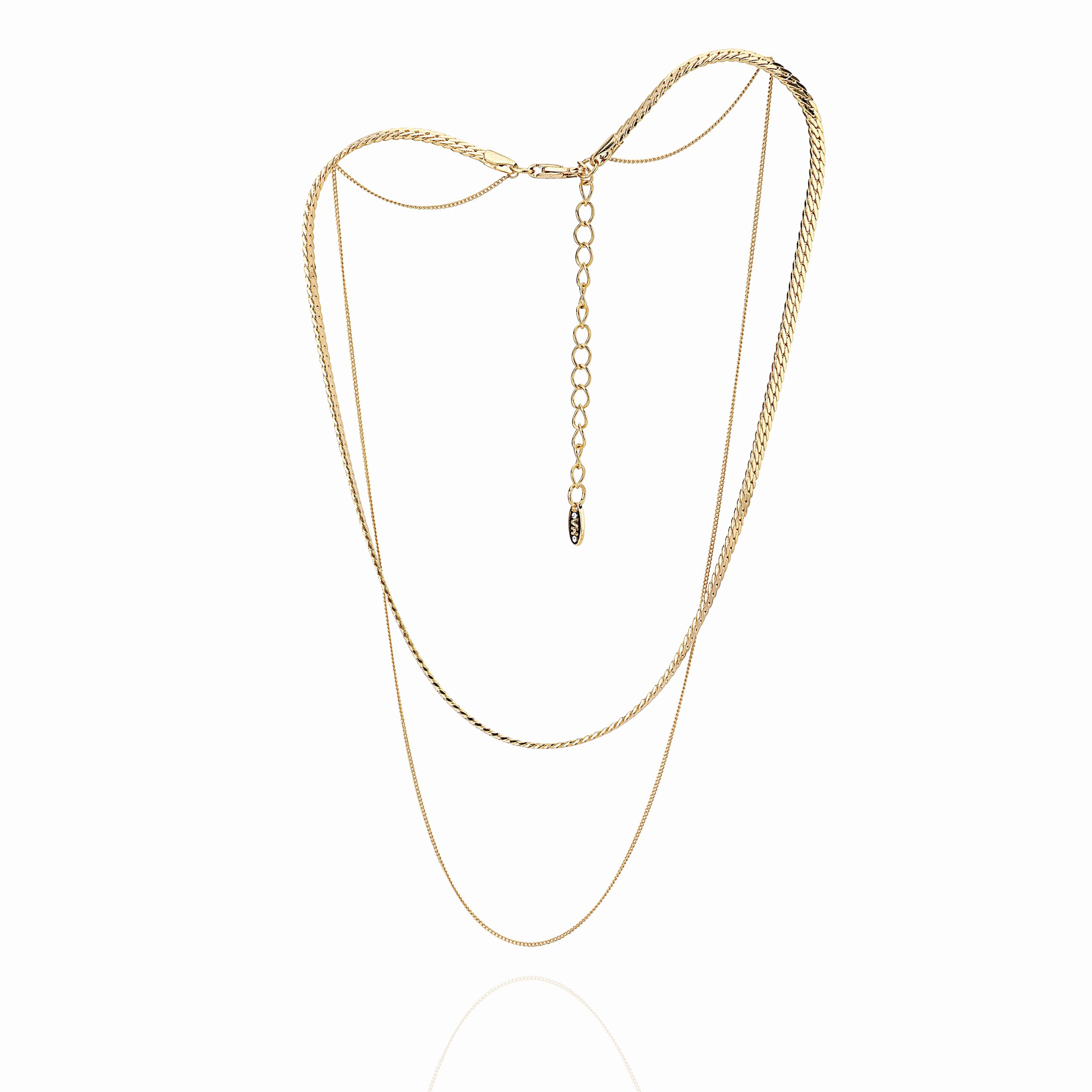 Crafted from copper-based metal, the SAGE Necklace features a stylish herringbone chain measuring 16 inches with a 2.75-inch extension for adjustable comfort. Complemented by a curb chain of 18.5 inches plus extension, this versatile piece offers both durability and a refined look suitable for everyday wear or special occasions.