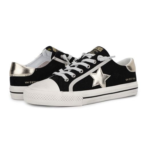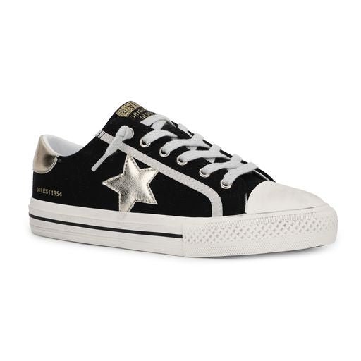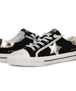 Stylish lace-up low top sneakers featuring distinctive gold star accents. Each pair comes with extra laces for versatile styling options. Designed with comfort and fit in mind, these shoes run true to size. The perfect blend of casual style and eye-catching detail for your everyday wardrobe.