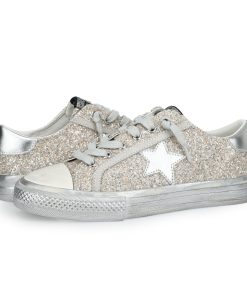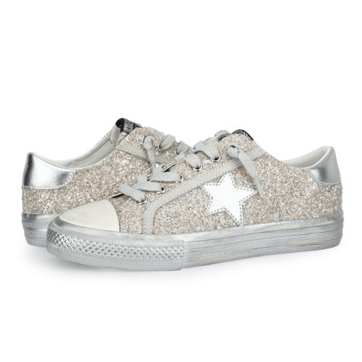Elevate your style with these eye-catching ALIVE chunky glitter silver shoes. Crafted from a premium blend of canvas, synthetic, leather, and suede materials, they feature convenient slip-on styling with no ties needed. The signature traction outsole provides reliable grip while the true-to-size fit ensures all-day comfort. Perfect for adding a touch of sparkle to any outfit.