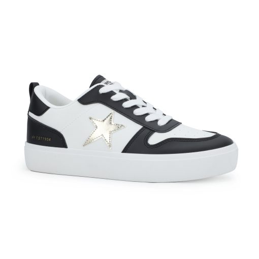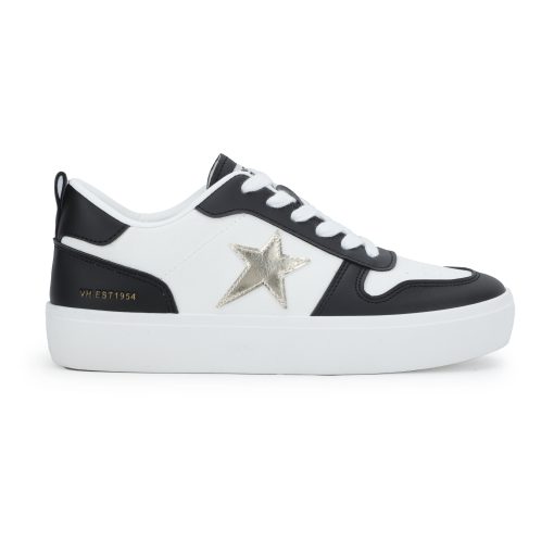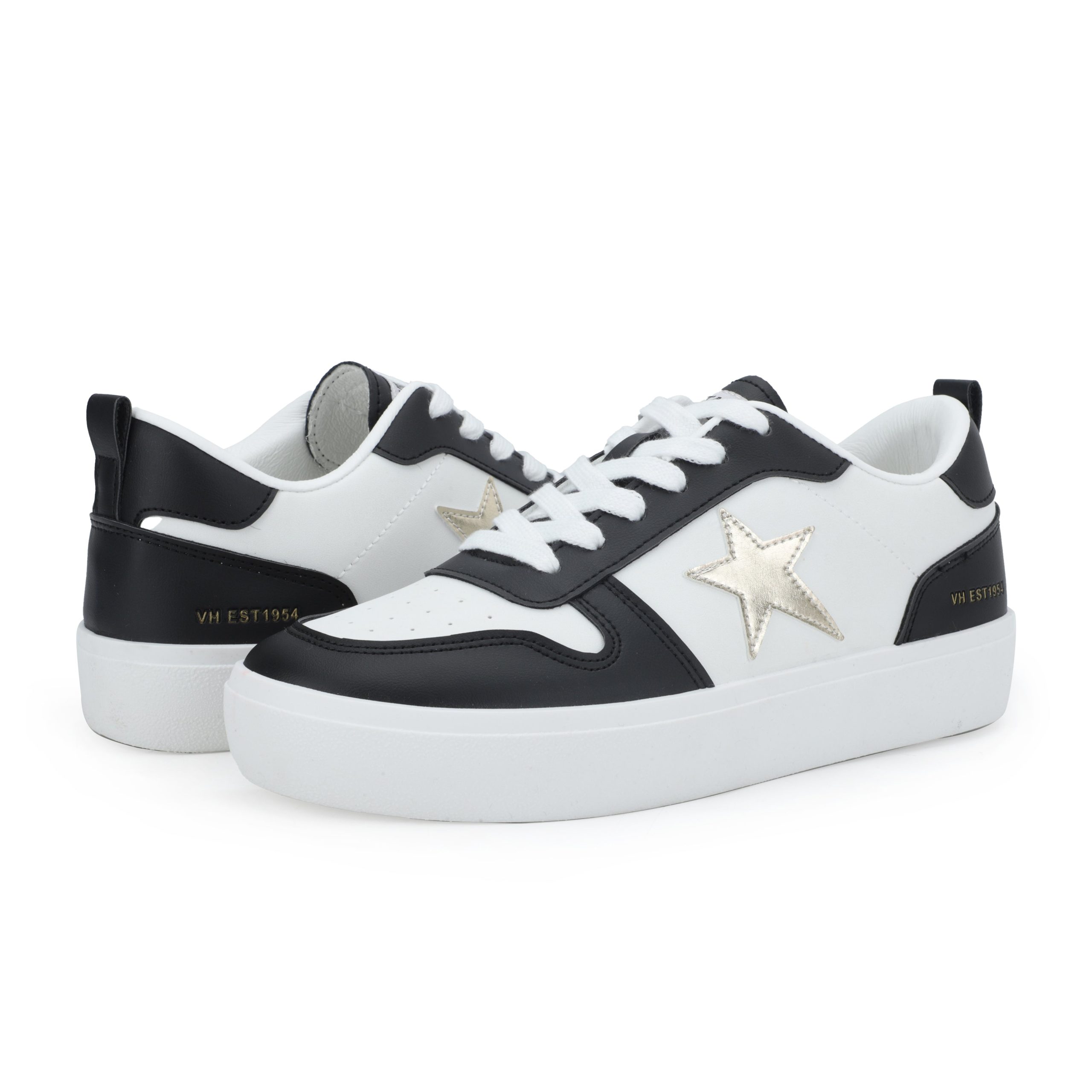 Effortlessly stylish AURA combines synthetic, leather, and suede materials in a sleek black, white, and gold colorway. The convenient slip-on design eliminates the need for laces while our signature traction outsole provides reliable grip. True-to-size fit ensures comfort right out of the box.