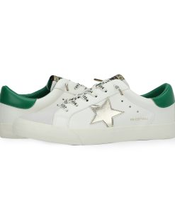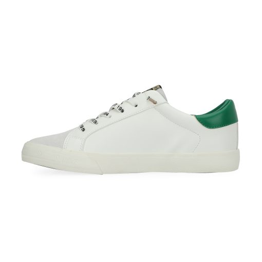 Effortlessly stylish GRANDE sneakers blend synthetic, leather, and suede materials for premium comfort and durability. The convenient slip-on design eliminates the need for laces while the distressed outsole adds character and vintage appeal. The white gold base with green pop accents creates a versatile look that pairs with multiple outfits. Fits true to size for reliable ordering.