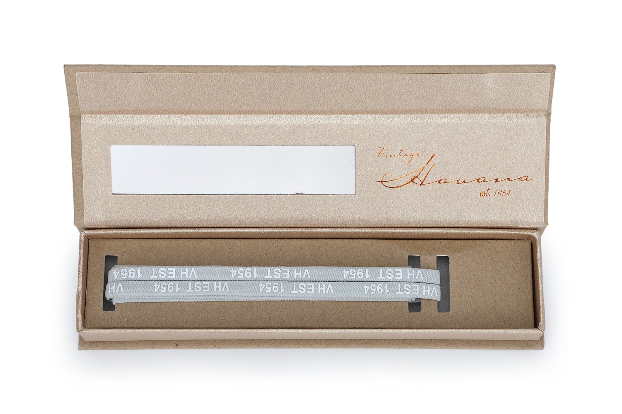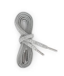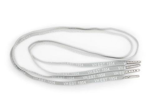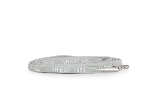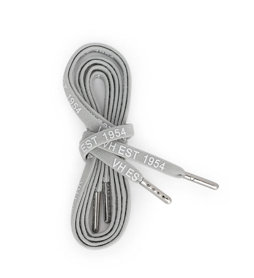 Premium grey laces with white and silver tips, featuring exclusive “VH EST 1954” printed detail. These stylish laces add a subtle vintage touch to your footwear while showcasing the Vintage Havana heritage. Perfect for refreshing your favorite shoes with a distinctive, branded accent.