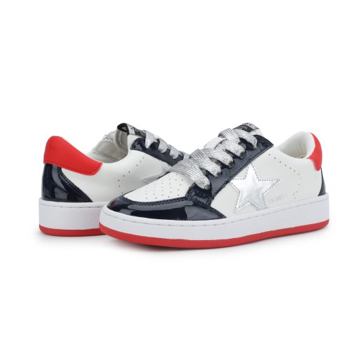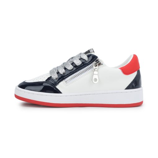 Designed for convenience and style, these KIDS ARIELLA shoes feature easy slip-on styling with no laces to tie. The white/patent/navy/red colorway offers versatile pairing options for everyday wear. True-to-size fit ensures comfort right out of the box, making them perfect for active kids who need both functionality and fashion.