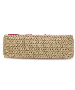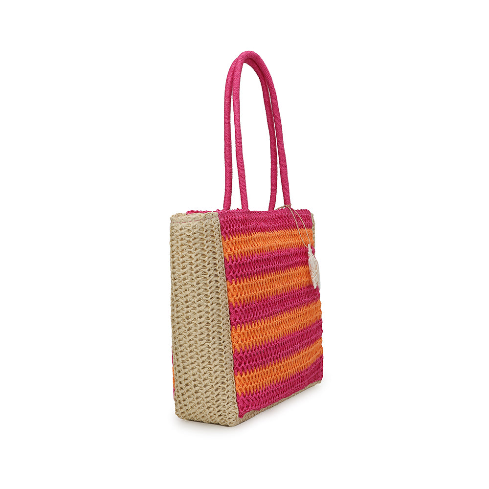 This Slam Bag 3 in pink and peach combines a stylish crochet design with a convenient top handle tote shape. The subtle star detail adds a unique touch, making it a versatile accessory for everyday use. Its lightweight construction ensures easy carrying while maintaining a chic, casual look.