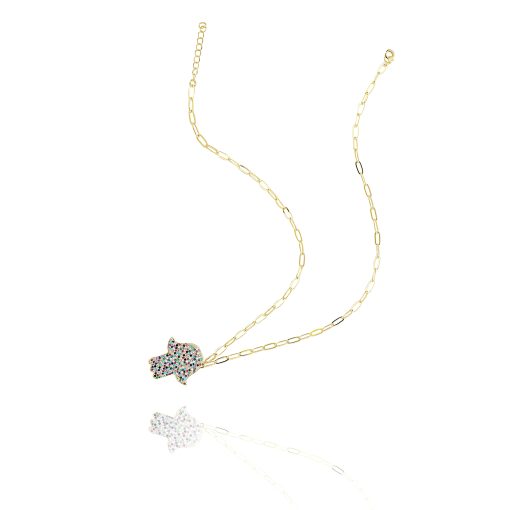 The TESSA Necklace features a delicate pendant measuring just under an inch in both length and width, complemented by a 17-inch chain with a 1-inch extension for adjustable wear. Finished with elegant gold plating, this piece offers a subtle yet sophisticated touch to any outfit.