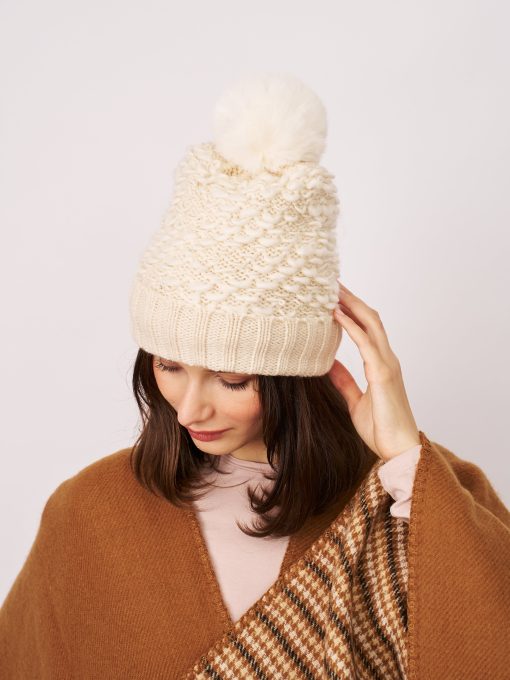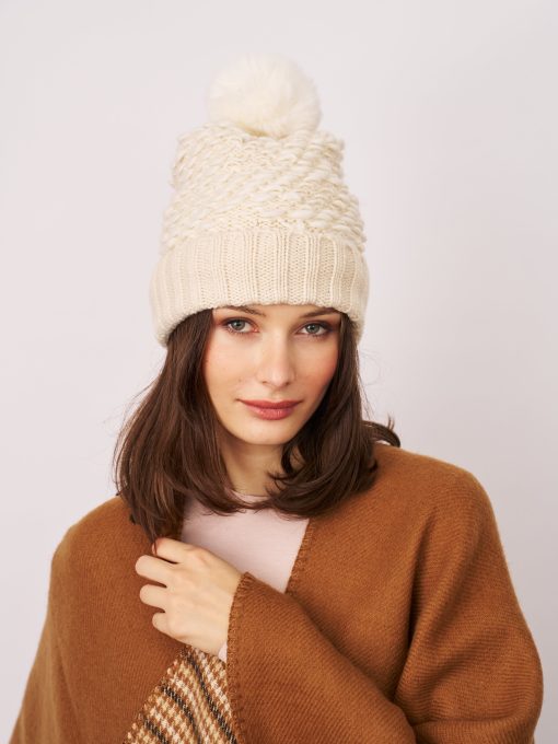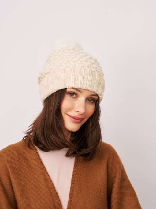 VintageHavana Women’s Turn Up Pompom Hat – Cream | Cream