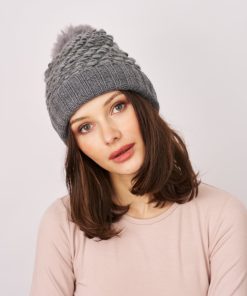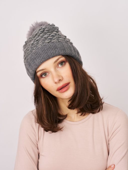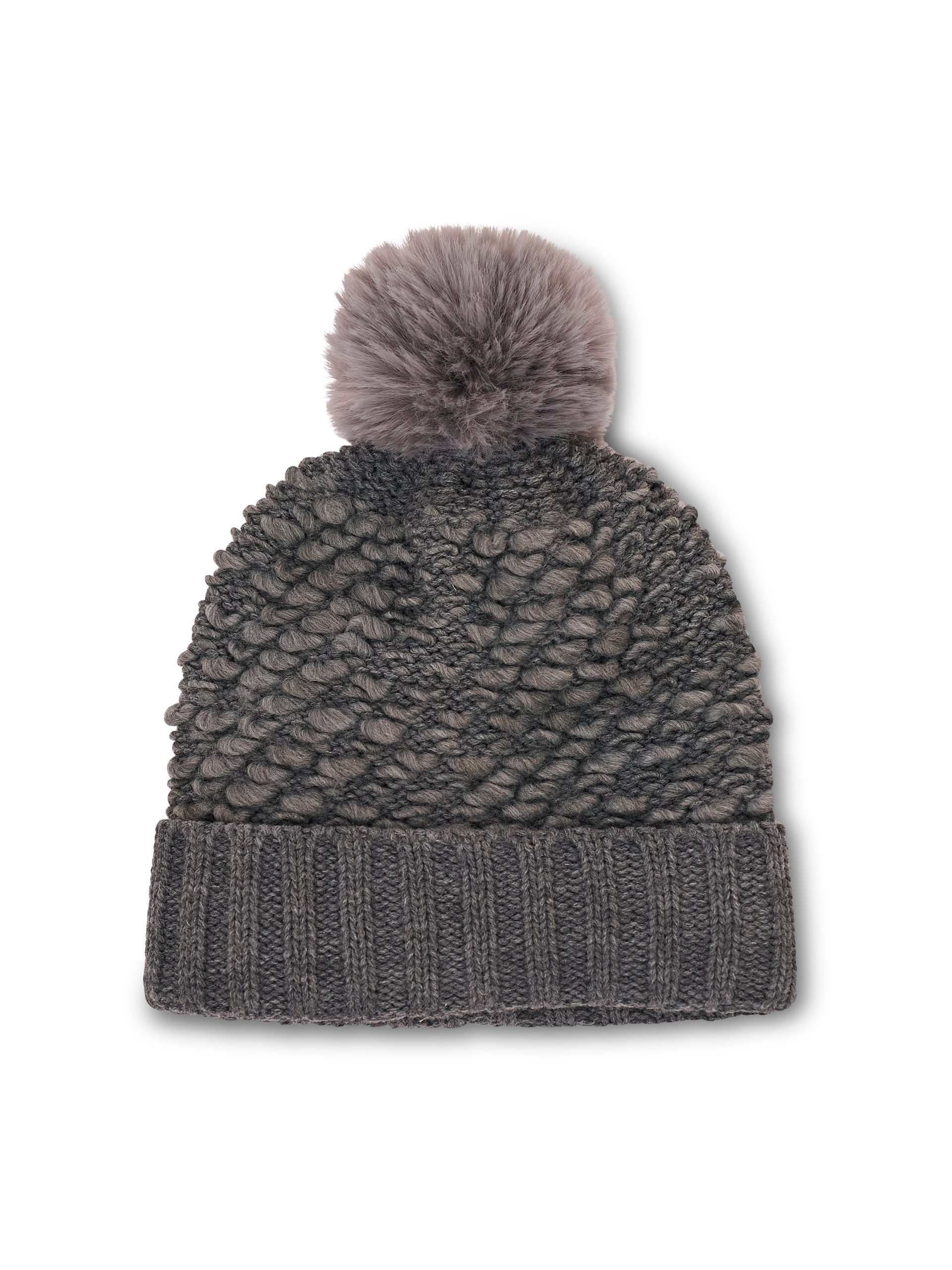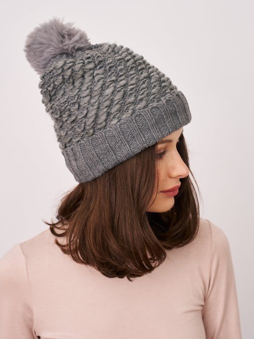 This grey turn-up pompom hat combines warmth and style with its textured acrylic shell and soft polyester lining. The 100% polyester pompom adds a playful touch while ensuring durability. Perfect for chilly days, this hat offers comfortable insulation and a snug fit for everyday wear.