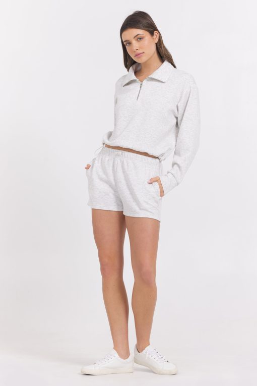These Varsity Grey Cloud Shorts with Bungee Cord offer a comfortable fit thanks to their elastic waistband. Designed for ease of movement and everyday wear, they combine practicality with a sleek, casual style. Perfect for lounging or light activity, these shorts provide reliable comfort without sacrificing a modern look.