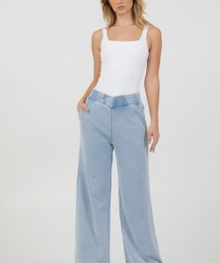 The Washed Denim Terry Fleece Pant features: