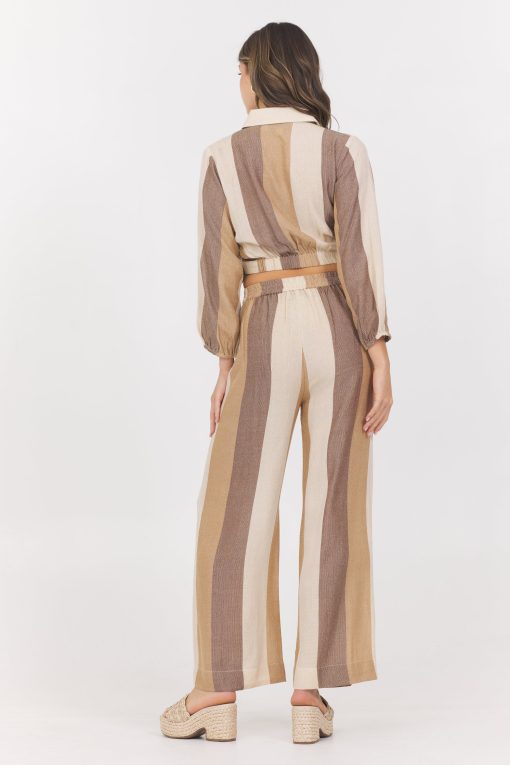 The Woven Metallic Stripe Surplus Top combines a sophisticated wrap design with subtle metallic stripes for a polished yet relaxed look. Its woven fabric offers comfortable wear, making it an ideal choice for both casual outings and refined occasions. This top effortlessly elevates your wardrobe with a touch of shimmer and modern style.