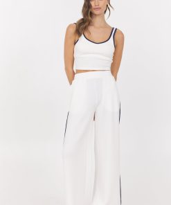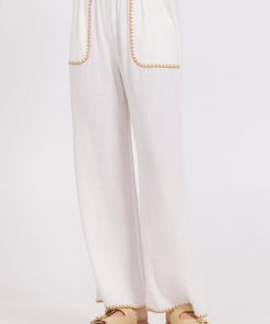 VintageHavana Women’s White Summer Sand Short Sleeve Sweater W/ Whipstitch | White With Summer Sand
